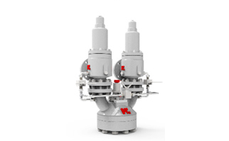 ● 三通流路設(shè)計(jì), 一個(gè)工位安裝兩個(gè)相同的安全閥,其中一個(gè)在線進(jìn)行超壓保護(hù),而另一個(gè)則作為維修備用
